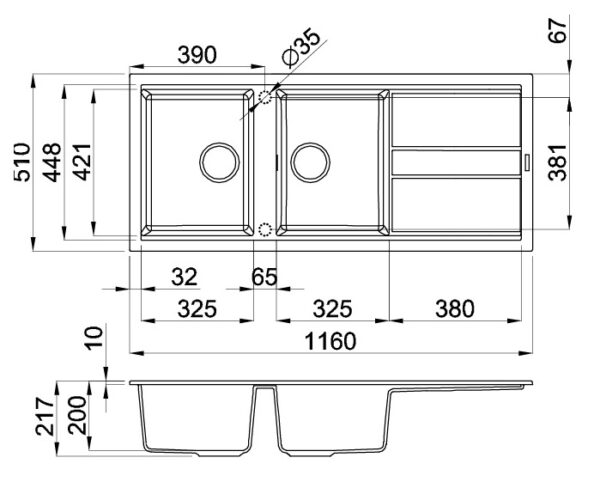 - Chất liệu đá Granite Nano, tính năng diệt khuẩn và bề mặt dễ vệ sinh cải thiện khả năng vệ sinh và tiện ích cho việc rửa chén.