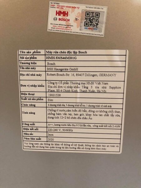 Máy rửa chén BOSCH HMH.SMS46MI01G|Serie 4 được phân phối chính hãng tại Khánh Trang Home, giao hàng và lắp đặt miễn phí TP.HCM, bảo hành chính hãng, bảo trì nhanh tận nhà trong 2 giờ.